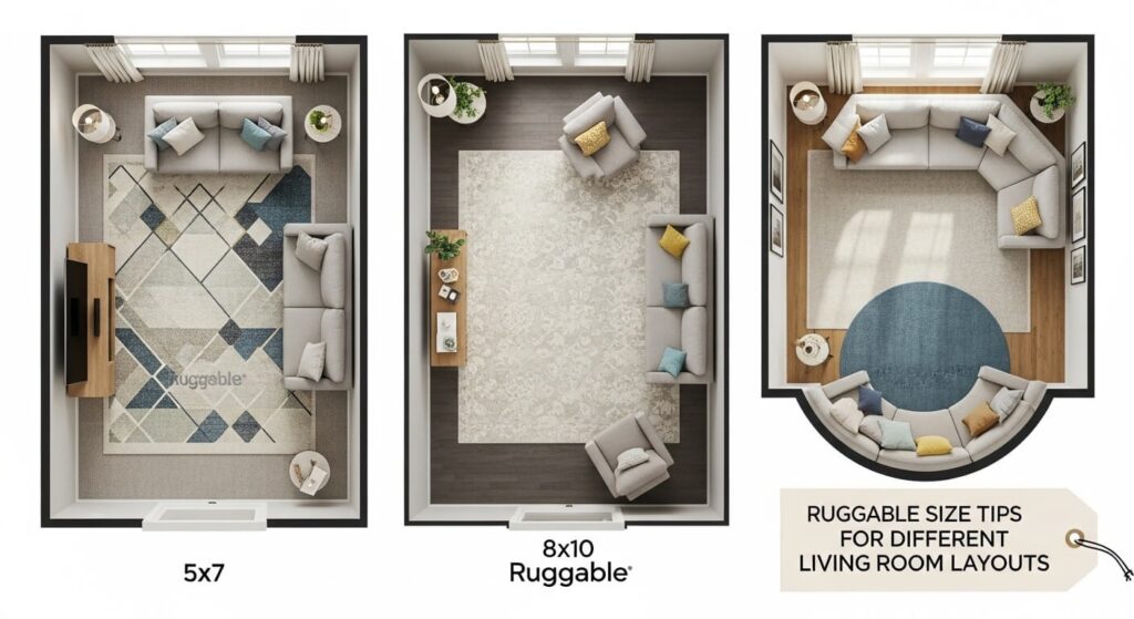 Matching your rug choice to your specific layout type creates that designer look without hiring professional help or making expensive mistakes.